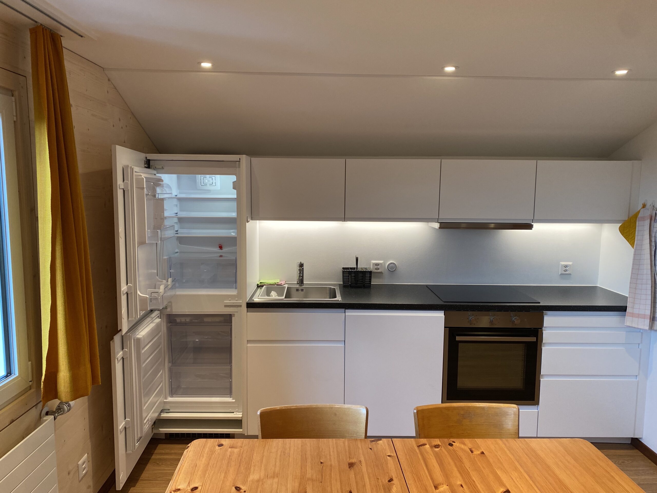 - neue Küchenzeile mit grossem Kühlschrank und Tiefkühlanteil, Backofen, 4-Platten Induktionsherd & Geschirrspühler