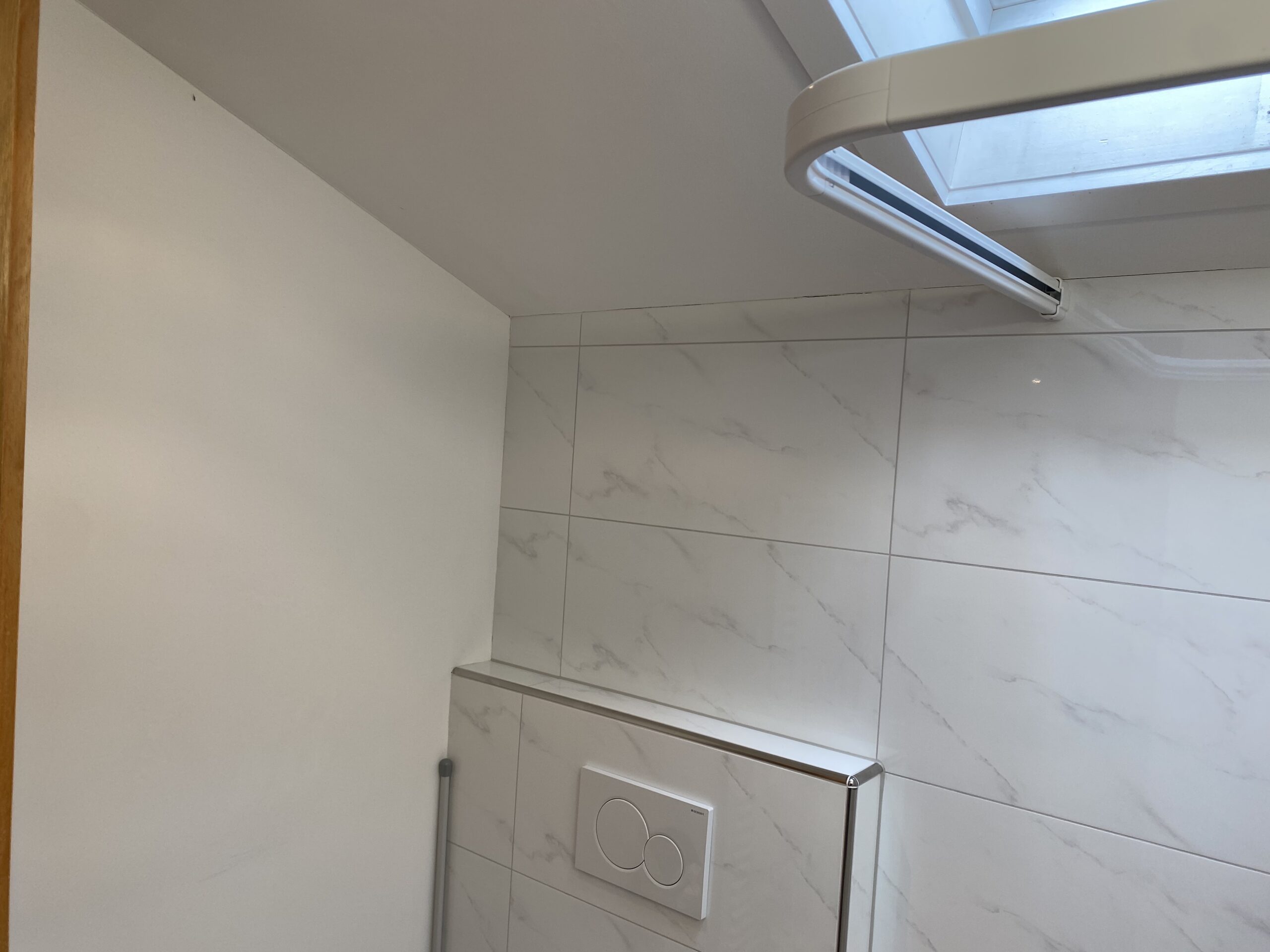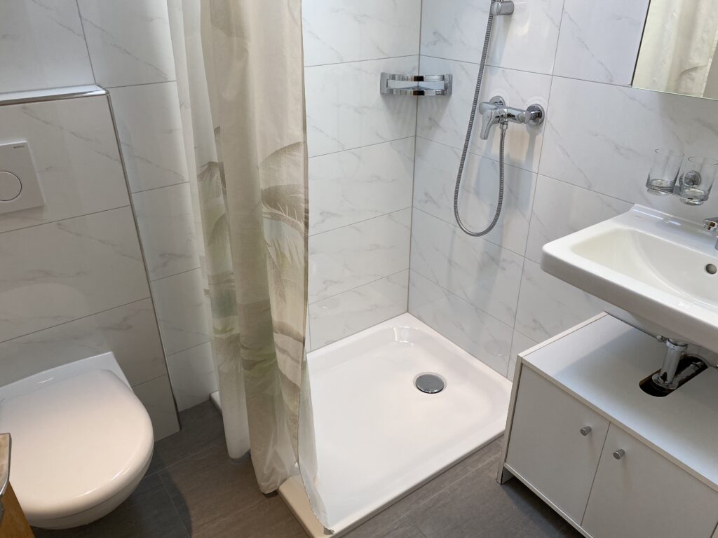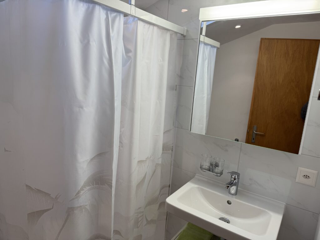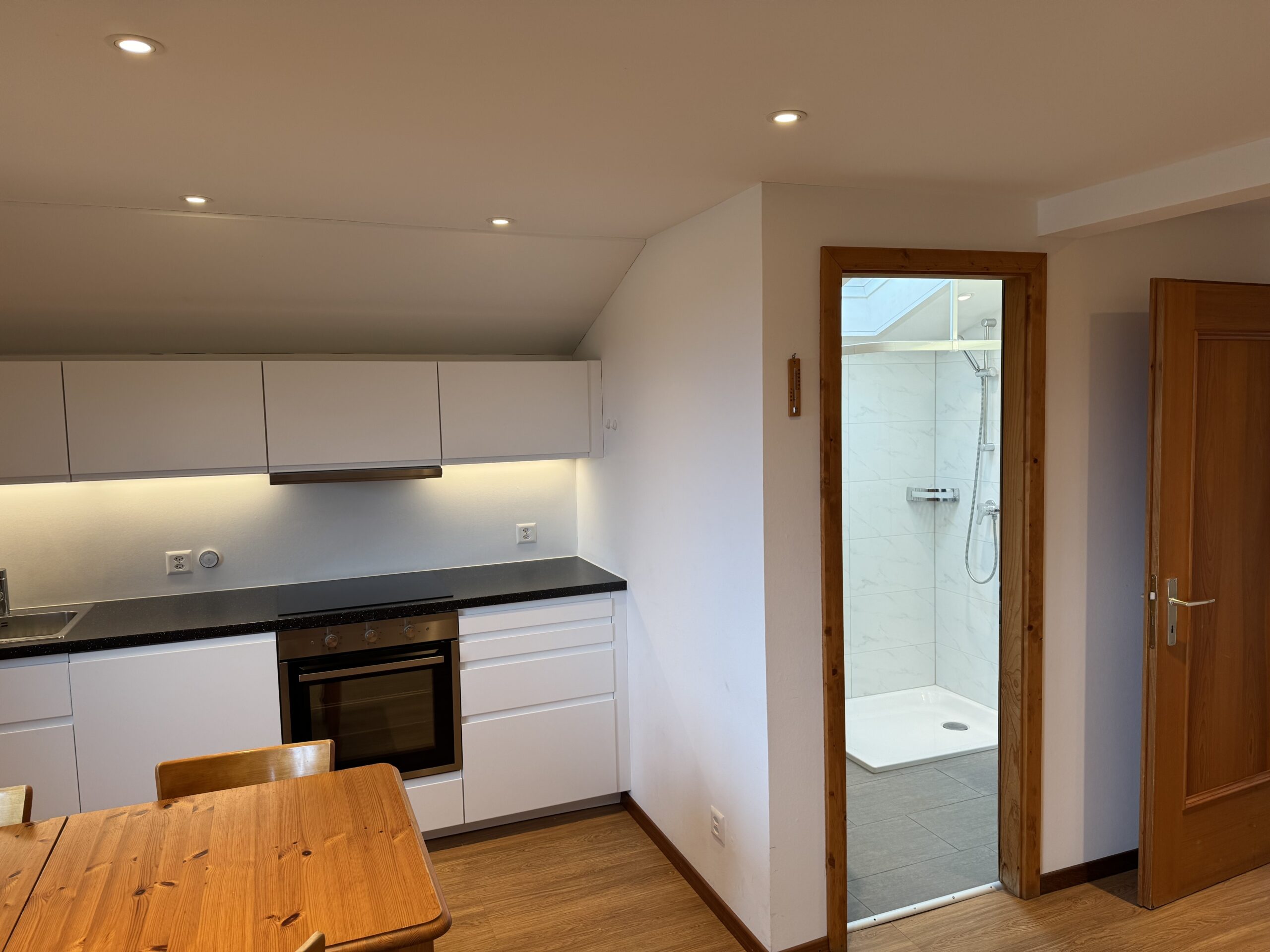 - grosszügiges Bad mit WC, Dusche & Lavabo mit Spiegelschrank, Handtuchhalter und Dachfenster